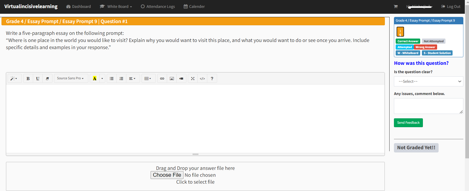 Preview submitted work, final outcomes, attempts, marks, and time taken for comprehensive performance assessment.