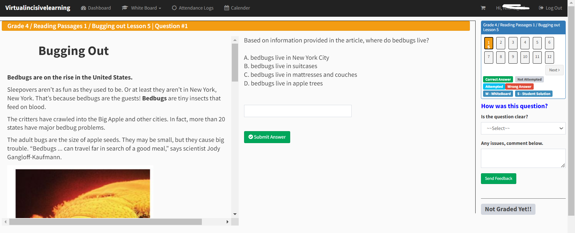 Getting a glimpse of a Grade 4 Reading Comprehension (RC) assessment question preview.