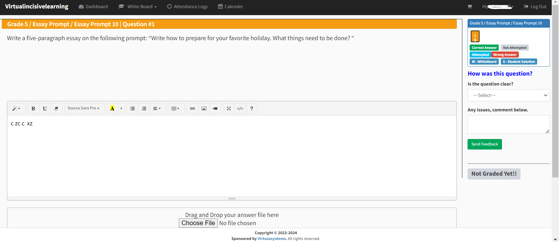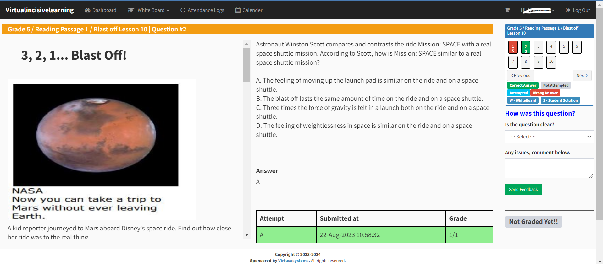 Getting a glimpse of a Grade 5 Reading Comprehension (RC) assessment question preview.
